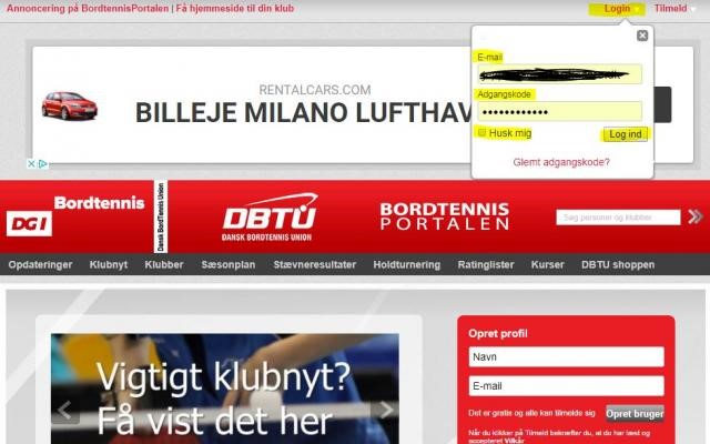 Fremover logger du dig på øverst til højre på BordtennisPortalens forside ved at indtaste din E-mail og din selvvalgte adgangskode. Klik på knappen ”log in” og du er nu inde på portalen. Sæt evt. flueben i firkanten ”Husk mig”, hvis du ikke vil skrive mail og adgangskode hver gang du skal bruge portalen.