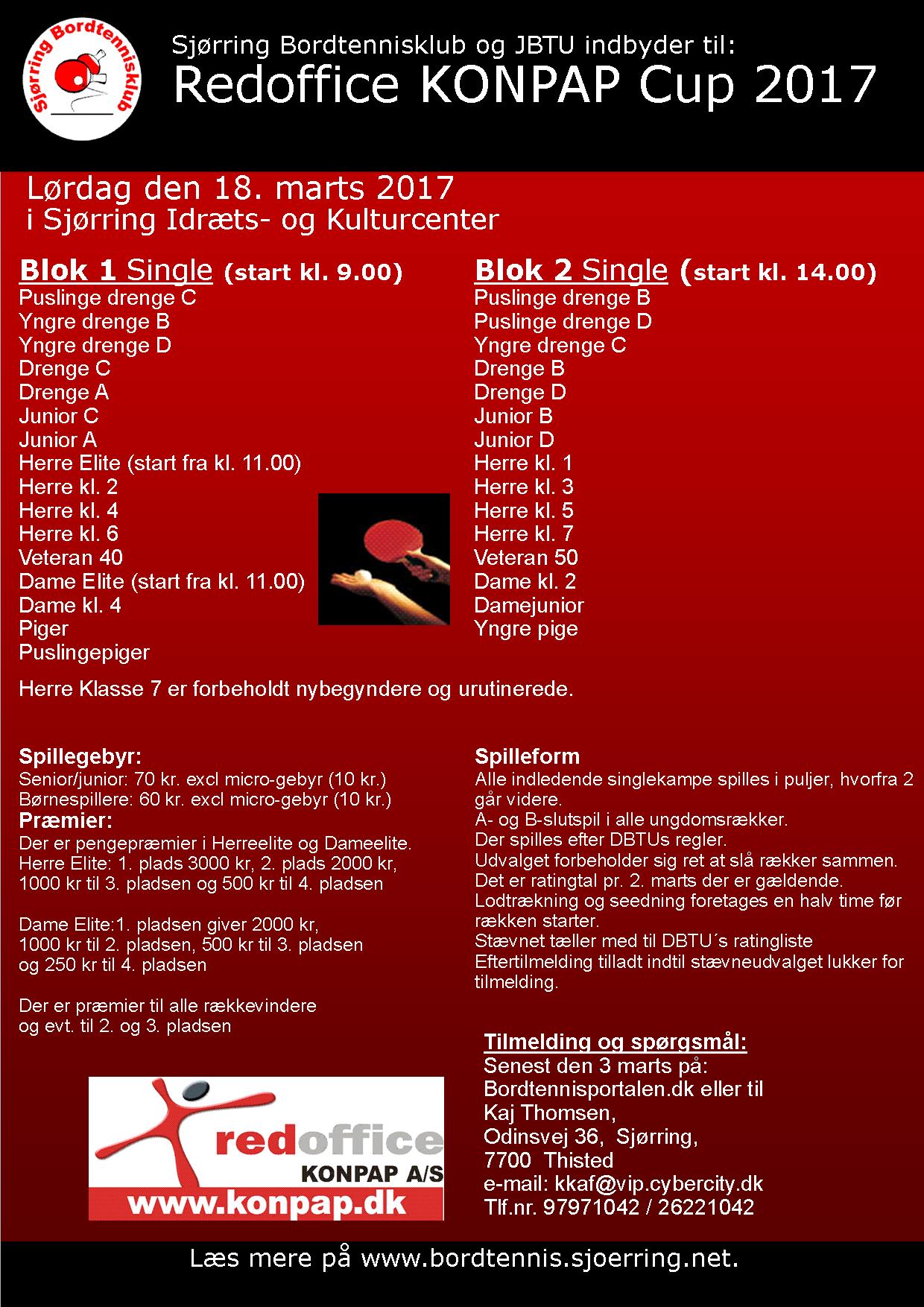 Sjørring Bordtennisklub indbyder til RedofficeKONPAP Cup 2017 d.18.3. i Sjørring